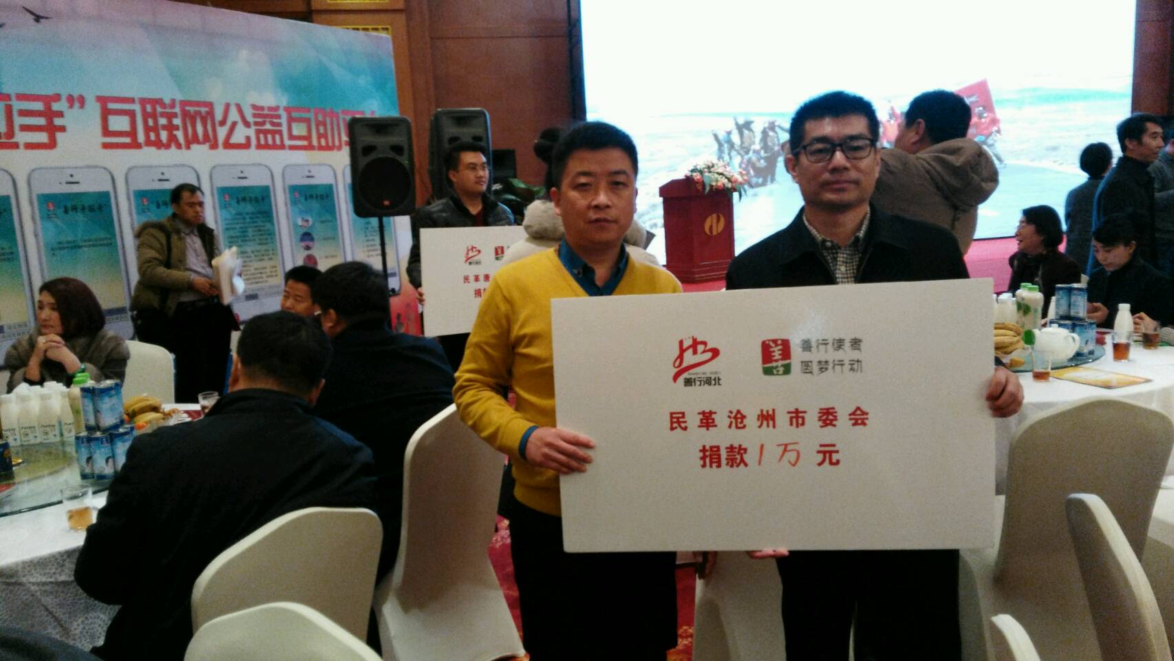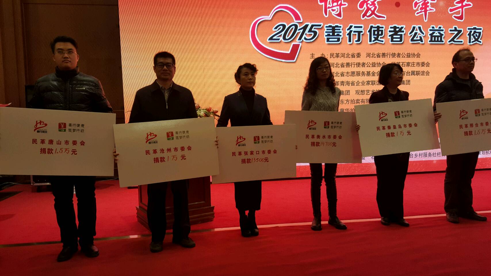 2016年1月23日,神彩v8杨国忠、运河支部主委孙新全参加了由民革河北省委主办的“博爱·牵手2015善行使者公益之夜”慈善拍卖活动。