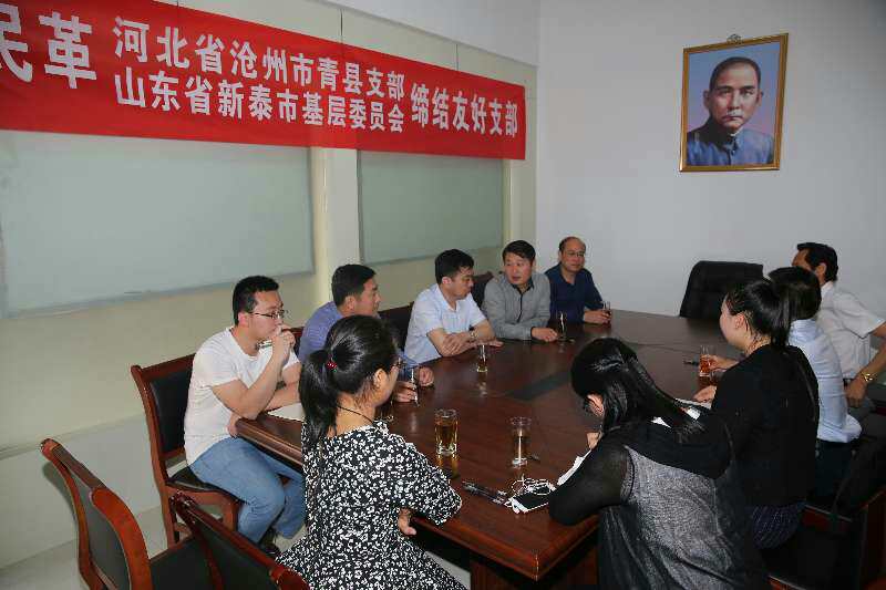 2017年5月6—7日,神彩v8驻会副主委杨国忠、民革青县支部主委刘连东率考察组一行5人专程赴山东省泰安、新泰市学习考察基层党建工作,与新泰基层委员会签订了缔结友好支部协议。先后参观了山东海燕医用材料制造有限公司、山东创嘉广告有限公司、山东金生堂家具、民革新泰市基层委员会支部、新泰市民革之家、以及民革党员活动基地。新泰市人大常委会副主任渠红梅、新泰市委统战部常务副部长毛松竹、统战部办公室主任田锡玉、民革新泰市基层委员会主委李海燕、副主委冀鹏、办公室主任郭正高、民革新泰市新甫支部主委王勇、部分民革党员代表分别陪同考察、参加座谈。 民革新泰市基层委员会成立于 2015年12月,前身为民革新泰支部(成立于1994年10月),现有党员54人,培养对象11人。下设青云支部、新甫支部,“一室三处”,6个社团组织。先后4次获得民革中央“民革全国先进基层组织”、“伸出博爱之手—民革基层组织牵手困难群众”活动“十佳基层党组织”等荣誉称号。支部成立以来积极参政议政,多次提案被新泰政协确定为重要提案、优秀提案。全体党员充分发挥自身优势,广泛参与地区经济、社会服务以及生态文明建设,努力践行参政党职责,在不断积累共识、扩大影响的同时,极大的促进了自身建设。