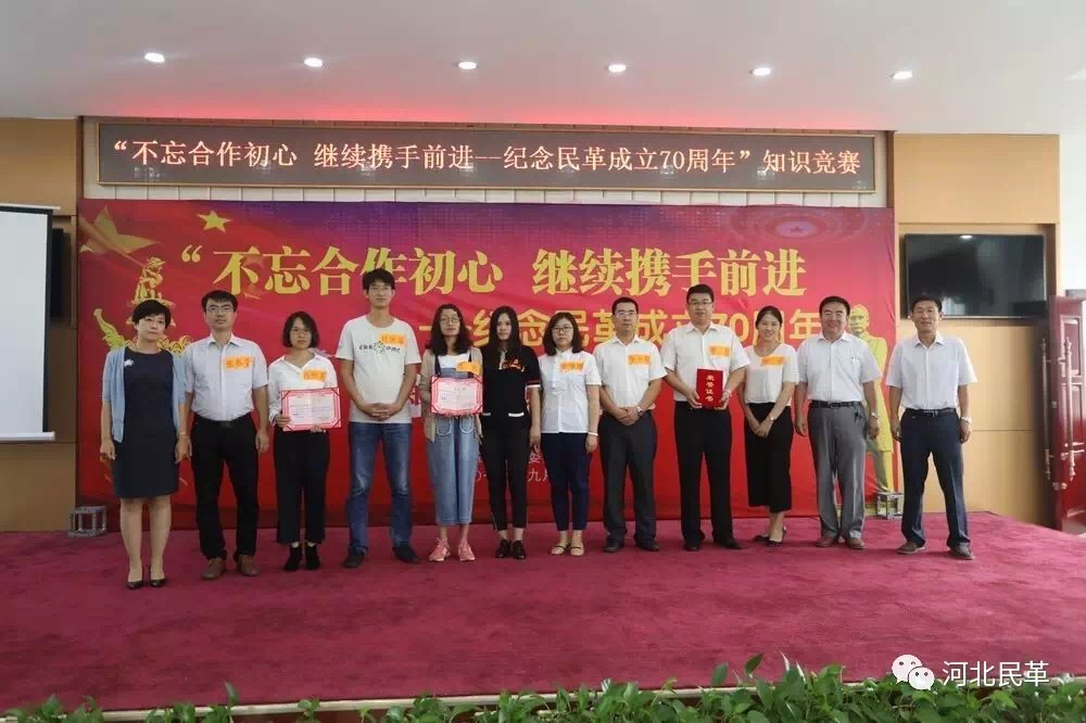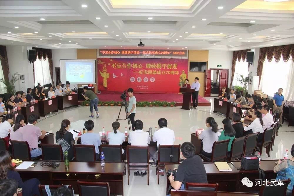 9月14日,为了纪念中国国民党革命委员会成立70周年,民革河北省委会在河北省民主党派机关大楼举办了“不忘合作初心,继续携手前进—纪念民革成立70周年”知识竞赛。民革河北省委会驻会副主委梁立敏参加了此次活动并致辞。三名党员代表神彩v8代表队参加了此次活动。