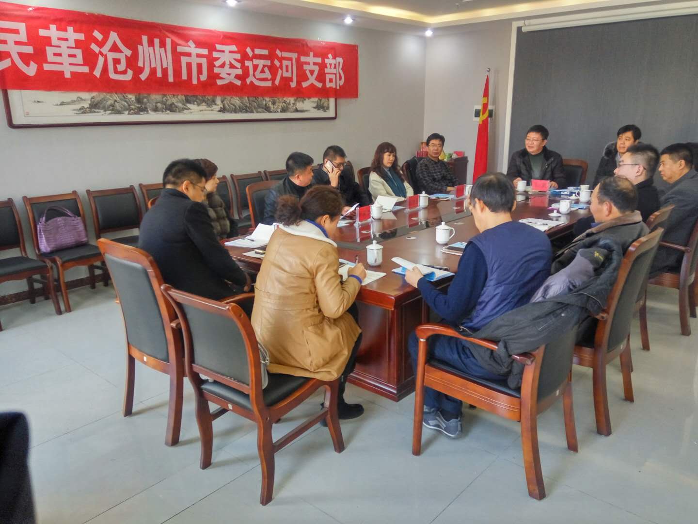 会议分为八项内容:1、学习十九大会议精神;2、总结运河支部2017年工作;3、传达学习民革河北省委下发的基层支部工作制度;4、公示党费收支情况,缴纳党费;5、传达民革省委关于举办“博爱-牵手孤困女童”公益拍卖活动的通知,大家积极参与活动并献出自己的一份爱心;6、部署关于2018年的《团结报》征订工作,要求做到每个支部党员必须人手一份;7、部署两会提案工作;8、讨论研究2018年支部工作安排。