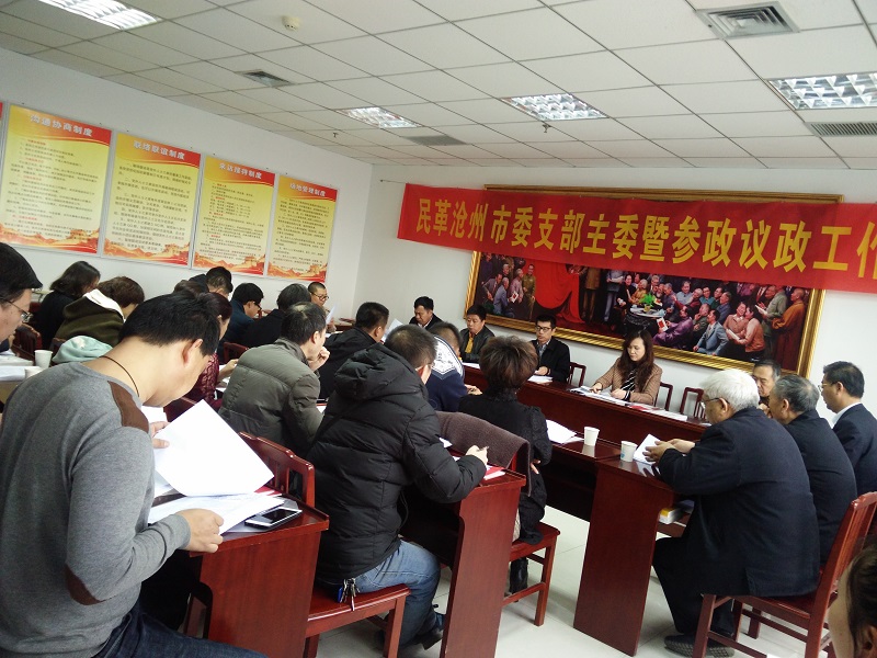 会上传达了民革中央、省委《关于开展示范性支部建设活动的通知》、民革河北省委关于转发《民革中央关于开展纪念中共中央“五一口号”发布70周年、民革成立70周年活动的通知》的通知、《关于纪念何香凝先生诞生140周年暨首届香凝如故全国美术作品展征稿通知》的精神,并部署相关工作。传达2018年全市统战部长会议精神,通报2018年两会民革市委的提案、议案情况。与会党员一起学习了民革章程,讨论、确定了2018年度调研课题、一号信箱题目,确定了各调研课题人选。并就今年参政议政工作展开讨论,争取出亮点。