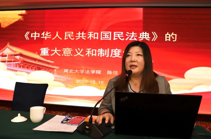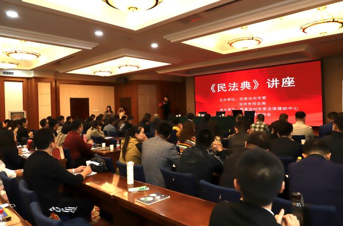 河北大学法学院副院长陈佳博士应邀来沧宣讲。陈博士从《民法典》制定过程、重大意义、体系构成、相关法律问题及民法典中的一系列重点、热点问题进行了解读。大家一致认为陈博士的解读深刻全面、阐释精当、对深入学习理解《民法典》具有很强的针对性和指导性。