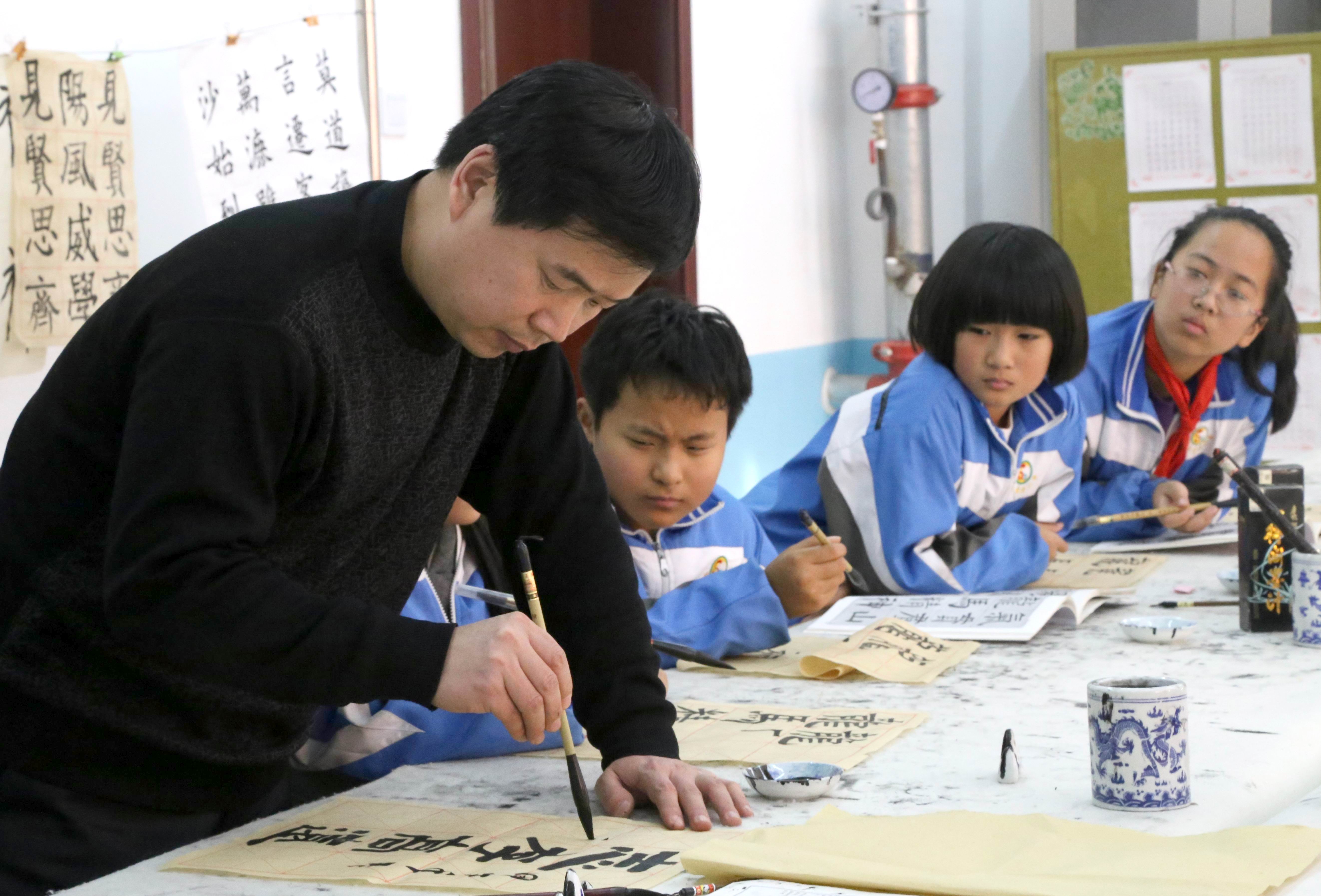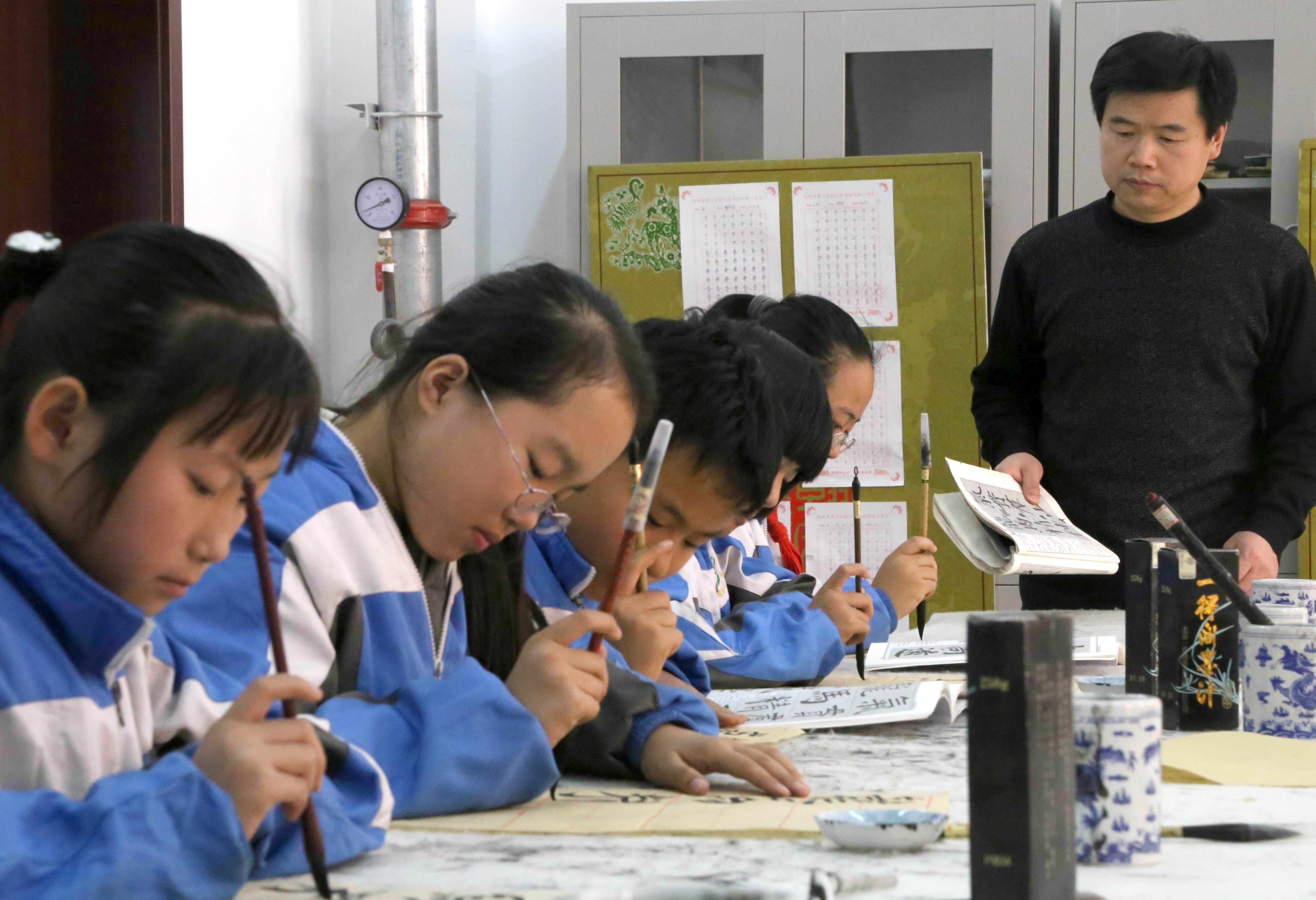 12月17日,沧州市新华区第二实验小学举行“书法名家进校园”活动,邀请书法家王旭初与学生们交流互动,提高学生的书写水平和审美情趣,弘扬中华民族传统文化。民革党员王旭初是中国书法家协会会员,河北省书法家协会隶书专业委员会副秘书长,河北省硬笔书法家协会理事,沧州市书法家协会理事,沧州市硬笔书法协会副主席,沧州市运河区政协委员,沧州市拔尖人才。据了解,在神彩v8提出让书法进入中小学的提案后,沧州市教育部门非常重视,书法课已经成为新华区第二实验小学必修课程,学校将书法课纳入课表,固定每班每周两课时的学习时间,引导学生们感受汉字书法的魅力。日前,教育部也公布了《中小学书法教育指导纲要》,规定从春季开学开始,书法教育纳入中小学教学体系,学生分年龄、分阶段学习硬笔和毛笔书法。